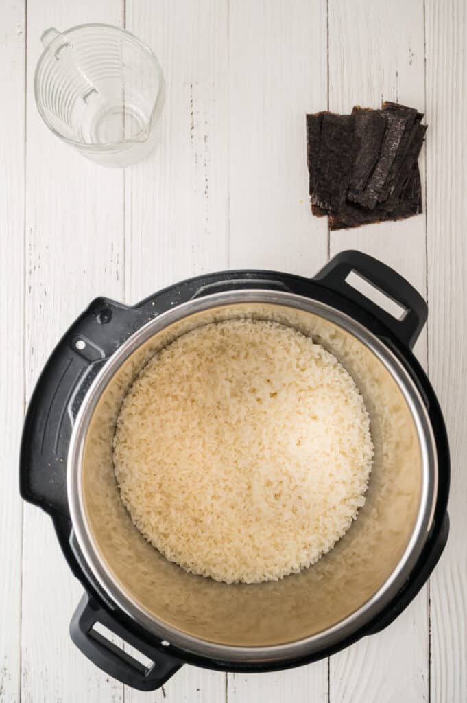 Add the rice and 2 cups of water to your Instant Pot. Cook on high pressure for 2 minutes, then allow a natural release. Once the rice is done, carefully remove the lid and let it cool slightly until it’s safe to handle.