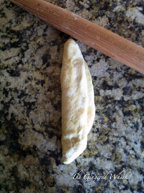 - Roll each ball into a long thin strip the same length as your baking sheet, working from the middle, out. If the dough is too elastic and keeps shrinking on you, cover the strips with a cloth and walk away for 10 minutes while the dough rests.