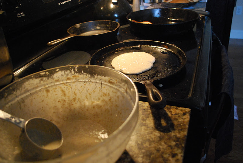 Once morning rolls around (and you’ve had a cup of coffee, of course) you and your little helper (if you happen to have one) just mix up a few more ingredients, let your skillets warm up, clean up the batter that flew across the room when your little helper really wanted to help stir (Ladybug’s new favorite thing) and you can pancake-it away!